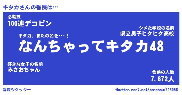 | 男性向けラノベタイトル風あだ名 | 『キタカの憂鬱』 |