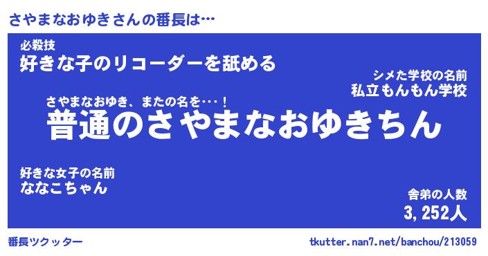 | 肩書あだ名 | 『さやまなおゆき御曹司』 |