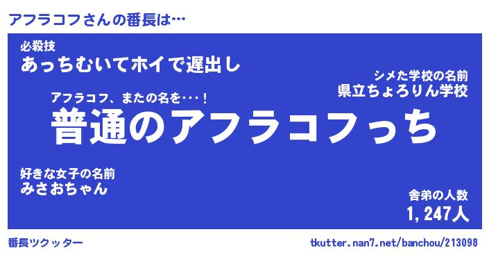 | 肩書あだ名 | 『アフラコフ店長』『アフラコフ国家主席』 |