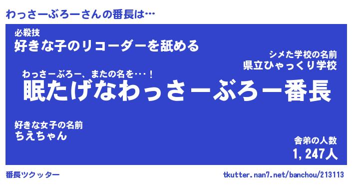 | 伝説のあだ名 | 『封印されしスナイパーわっさーぶろー』 |