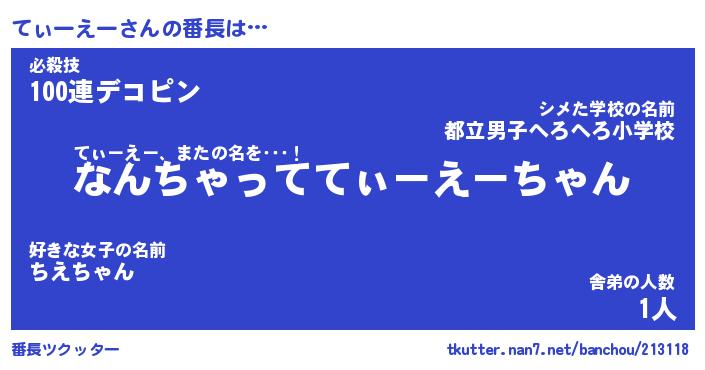 | ポケモン風あだ名 | 『ティチュウ』『ティーダネ』 |