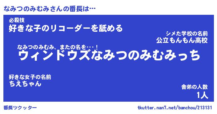 | ヒーロー風カッコイイあだ名 | 『スーパーナミツノミムミ』 |