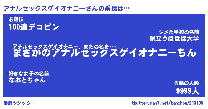 | 男性向けラノベタイトル風あだ名 | 『アナルセックスゲイオナニーの憂鬱』 |