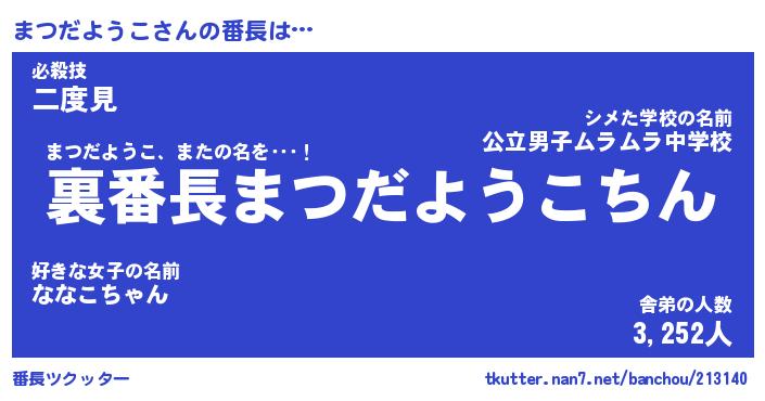 | 2回繰り返すあだ名 | 『まつまつ』『ままつつ』『ぬぷぬぷ』 |
