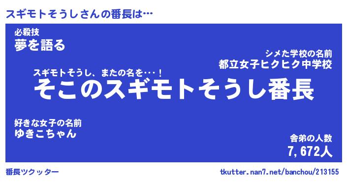 | ピコ太郎風あだ名 | 『スコ四郎』『ピス八郎』『スギ十郎』 |