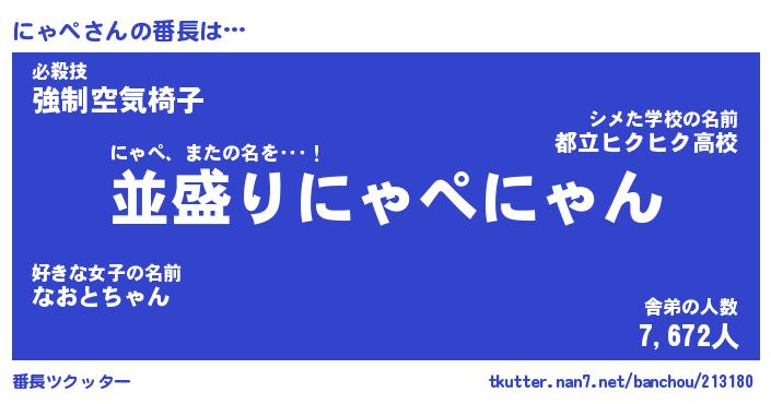 | ヒーロー風カッコイイあだ名 | 『スーパーニャペ』『ウルトラにゃぺマン』 |