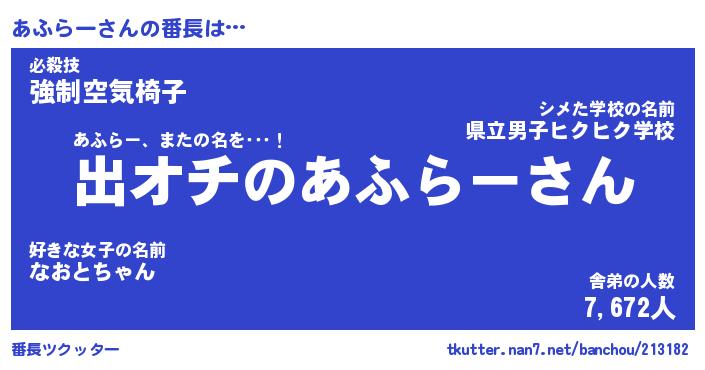 | 意味不明あだ名 | 『ペロリンあふらー』『永久保存あふらー』 |