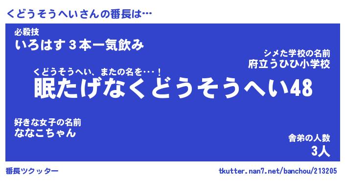 | ピコ太郎風あだ名 | 『クコ六郎』『ピク四郎』『クド史郎』 |
