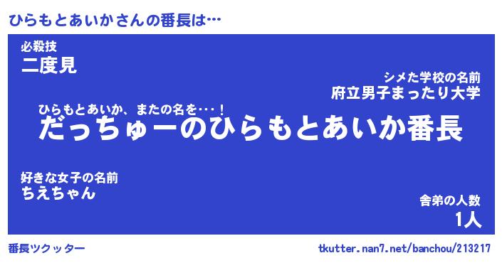 | ヘコむあだ名 | 『ひらもー』『酢こんぶ』『ひらお』 |