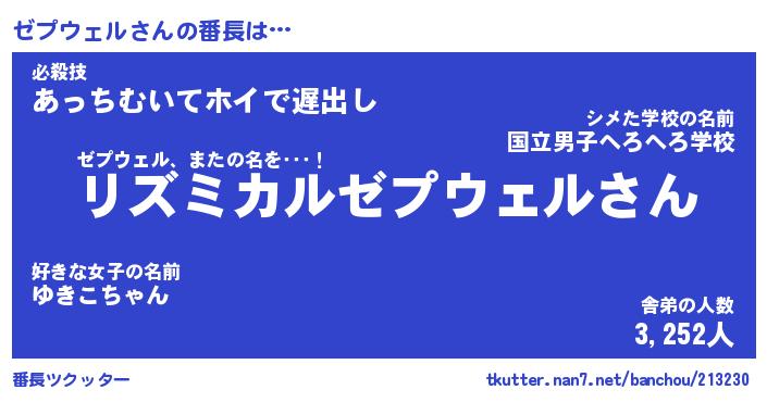 | ピコ太郎風あだ名 | 『ゼコ四郎』『ピゼ二郎』『ゼプ五郎』 |