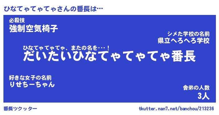 | ヒーロー風カッコイイあだ名 | 『スーパーヒナテャテャテャ』 |