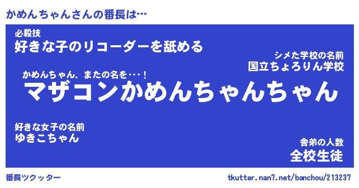 | ヒーロー風カッコイイあだ名 | 『スーパーカメンチャン』『暗黒騎士カメ』 |