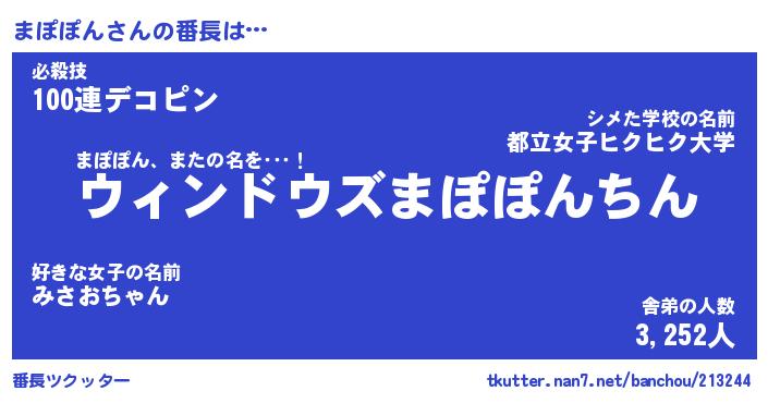 | 欧米人風あだ名 | 『マイケルまぽぽん』『ウサインまぽぽん』 |
