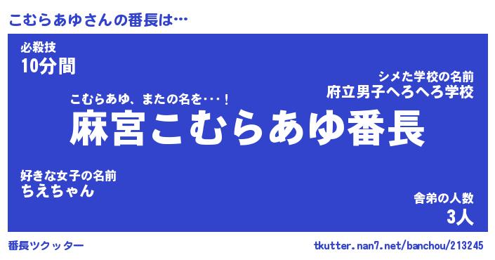 | 伝説のあだ名 | 『不死鳥の竜騎士こむらあゆ』 |