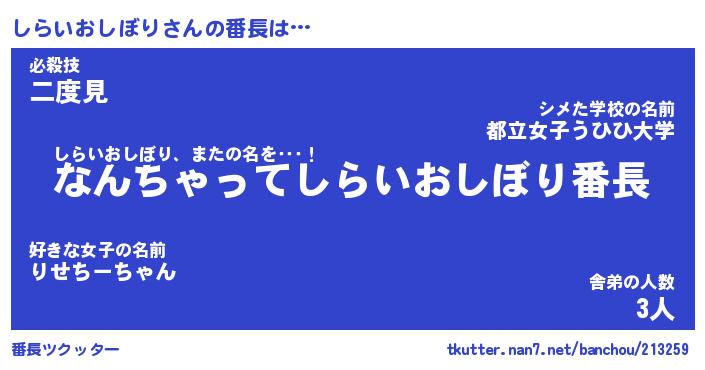 | 2回繰り返すあだ名 | 『しらしら』『ししらら』『ねちねち』 |