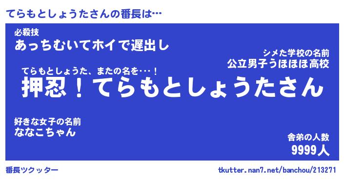 | ヘコむあだ名 | 『てらにー』『つくし』『てら太郎』 |