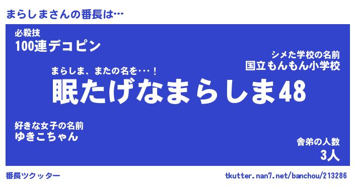 | 意味不明あだ名 | 『ペロリンまらしま』『永久保存まらしま』 |