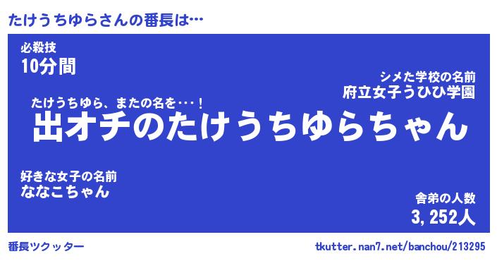 | 男性向けラノベタイトル風あだ名 | 『たけうちゆらの憂鬱』 |