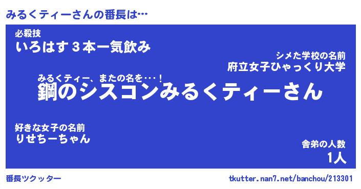 | 伝説のあだ名 | 『封印されしスナイパーみるくティー』 |