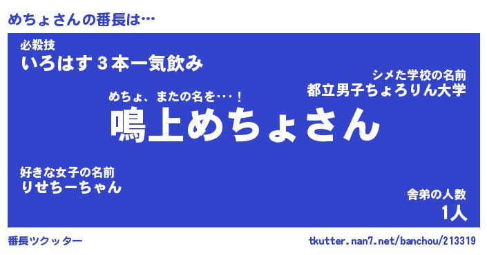 | ヘコむあだ名 | 『めちふぇ~』『なまこ酢』 |