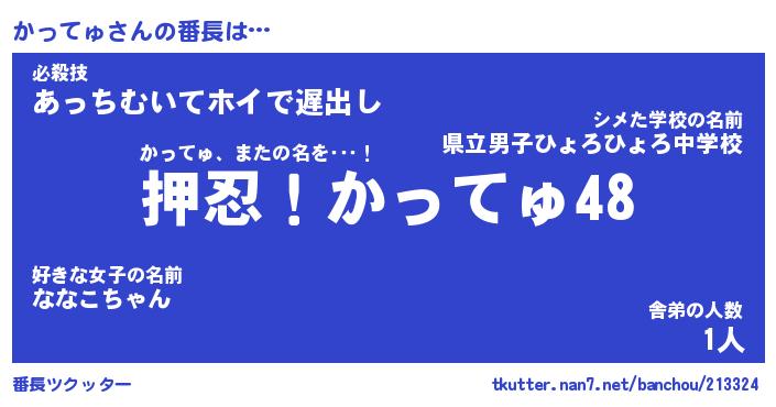 | 意味不明あだ名 | 『ペロリンかってゅ』『永久保存かってゅ』 |