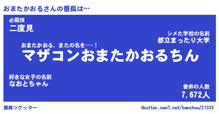| ポケモン風あだ名 | 『オマチュウ』『オマタダネ』 |