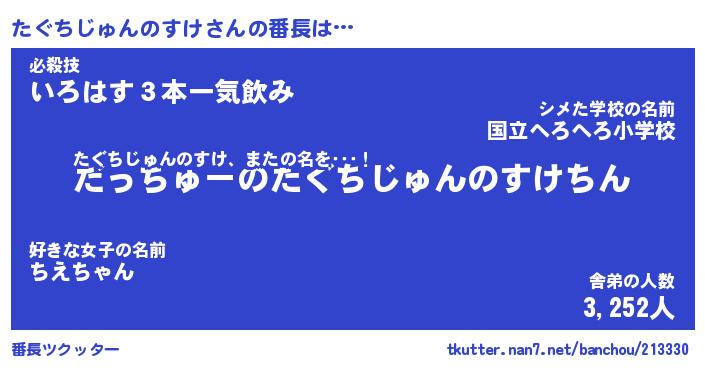 | 意味不明あだ名 | 『ペロリンたぐちじゅんのすけ』 |