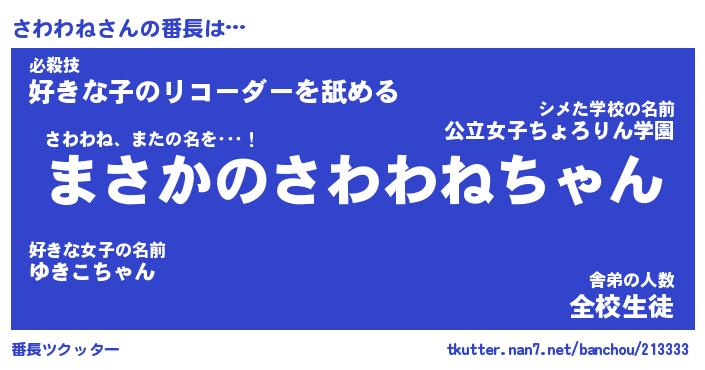 | 肩書あだ名 | 『さわわね社長』『さわわね大統領』 |