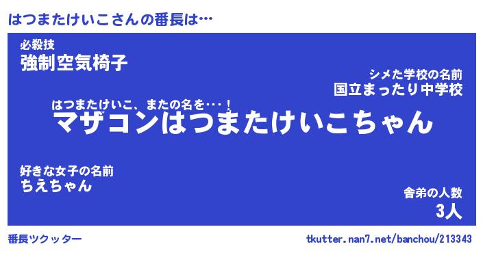 | 伝説のあだ名 | 『封印されしスナイパーはつまたけいこ』 |