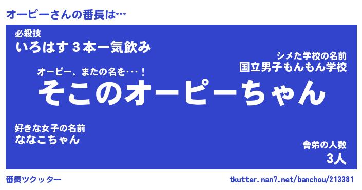 | 意味不明あだ名 | 『ペロリンオーピー』『永久保存オーピー』 |