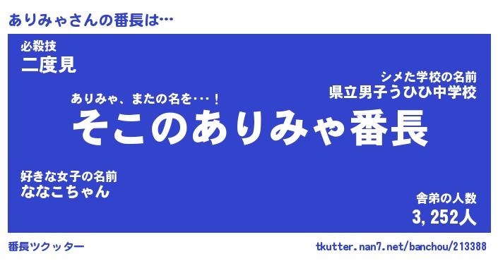 | 意味不明あだ名 | 『ペロリンありみゃ』『永久保存ありみゃ』 |