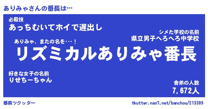 | 伝説のあだ名 | 『伝説のスナイパーありみゃ』 |