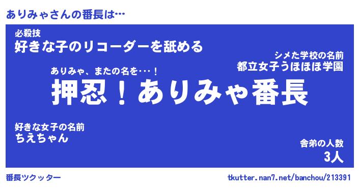| 欧米人風あだ名 | 『マイケルありみゃ』『ウサインありみゃ』 |