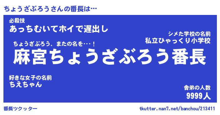 | ヒーロー風カッコイイあだ名 | 『スーパーチョウザブロウ』 |
