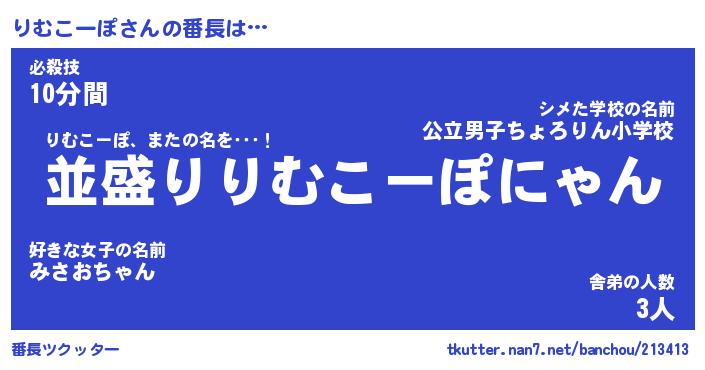 | 男性向けラノベタイトル風あだ名 | 『りむこーぽの憂鬱』 |