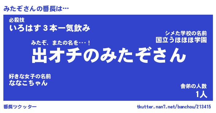 | 意味不明あだ名 | 『ペロリンみたぞ』『みたぞフォーエバー』 |