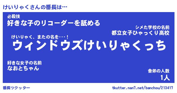 | ヘコむあだ名 | 『けいふぇ~』『酢こんぶ』 |