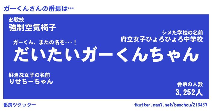 | 意味不明あだ名 | 『ペロリンガーくん』『永久保存ガーくん』 |