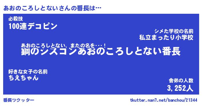 | 伝説のあだ名 | 『封印されしスナイパーあおのころしとない』 |