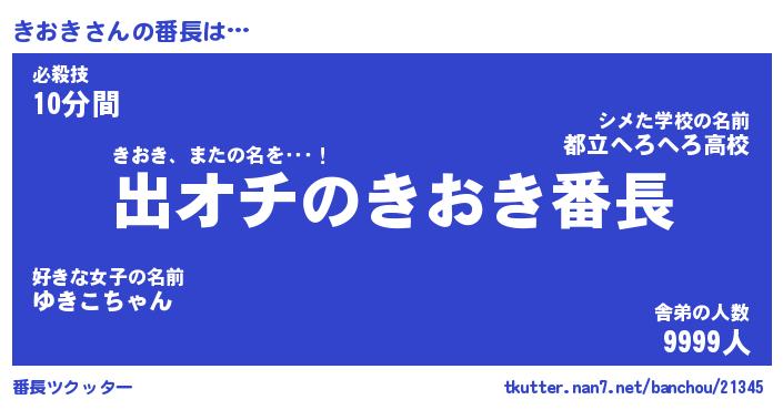| ヒーロー風カッコイイあだ名 | 『スーパーキオキ』『ウルトラきおきマン』 |