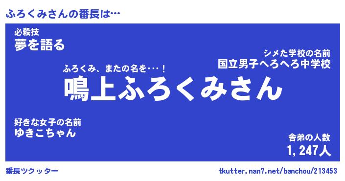 | 欧米人風あだ名 | 『マイケルふろくみ』『ウサインふろくみ』 |