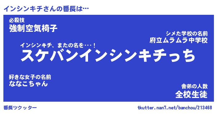 | ヒーロー風カッコイイあだ名 | 『スーパーインシンキチ』『暗黒騎士イン』 |