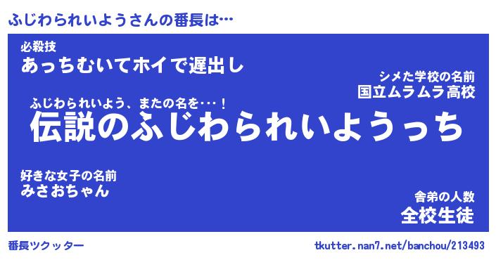 | 伝説のあだ名 | 『伝説のスナイパーふじわられいよう』 |
