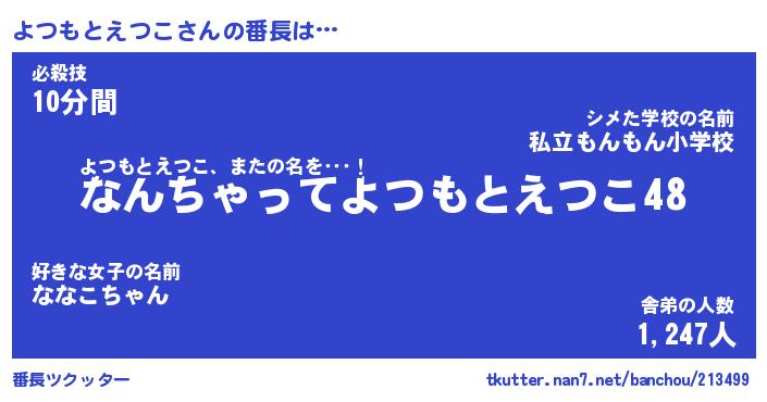 | 伝説のあだ名 | 『伝説のスナイパーよつもとえつこ』 |