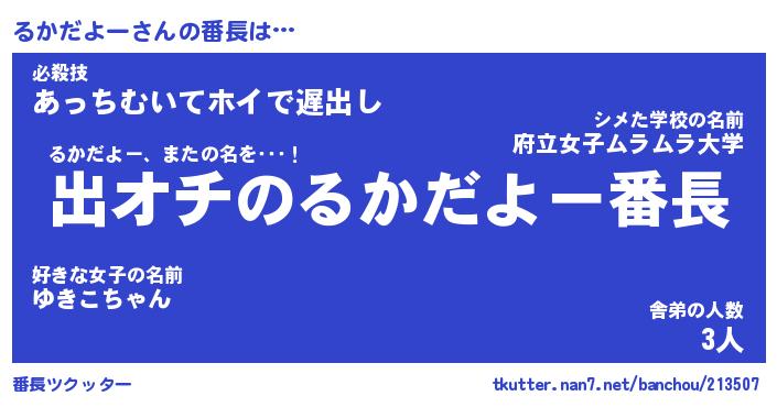 | ヘコむあだ名 | 『るかにー』『つくし』『るかお』 |
