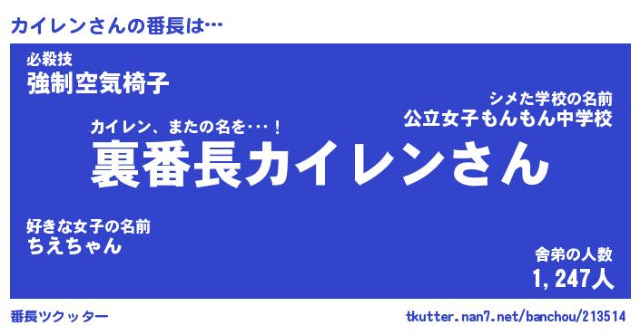 | 意味不明あだ名 | 『ペロリンカイレン』『永久保存カイレン』 |