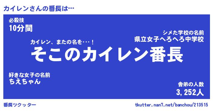 | 意味不明あだ名 | 『ペロリンカイレン』『永久保存カイレン』 |
