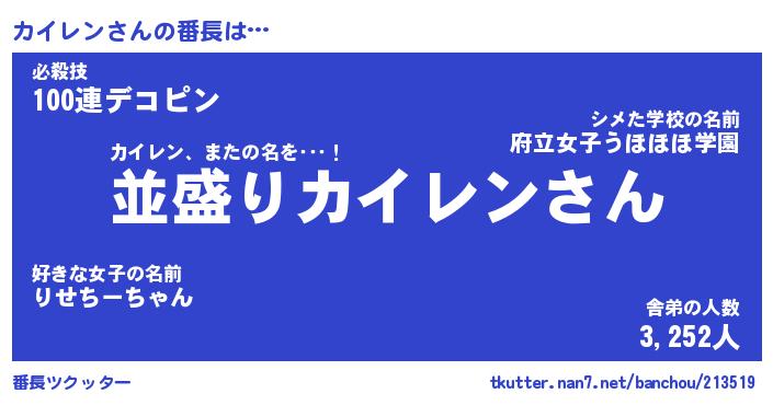 | 意味不明あだ名 | 『ペロリンカイレン』『永久保存カイレン』 |