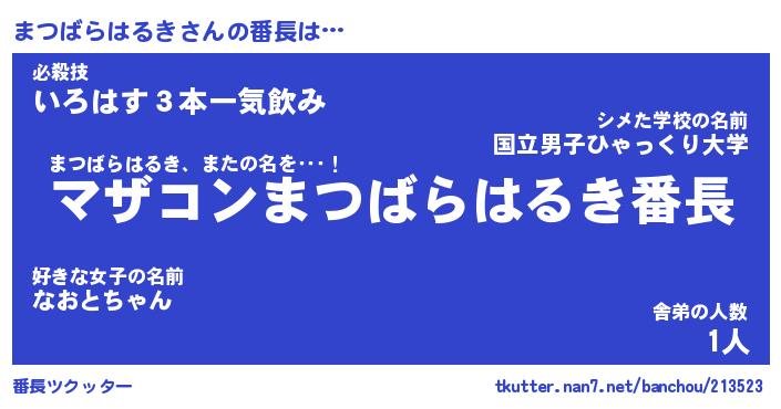 | ヒーロー風カッコイイあだ名 | 『スーパーマツバラハルキ』 |
