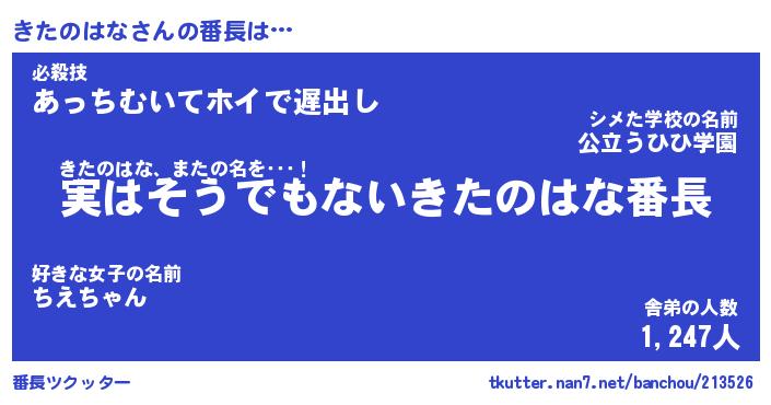 | ファンタジー風あだ名 | 『キタフェル』『エターナルキタノハナー』 |